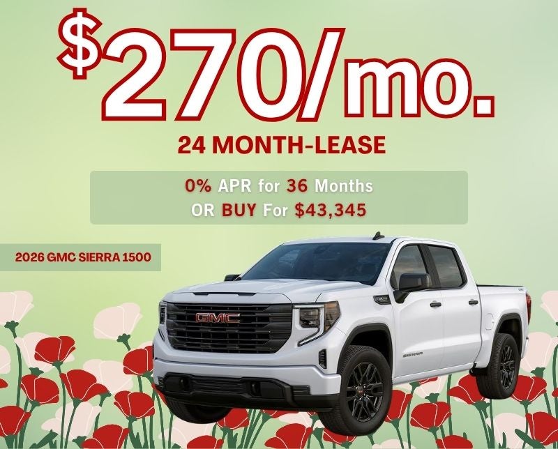 Based off Stock # G26268. MSRP: $53,595. Includes $2,750 Dealer Discount (everyone qualifies), $3,500 GM Trade-in Allowance Program (Must trade-in a 2012 model year or newer vehicle. Not available with lease and some other offers.), $1750 Consumer Cash (everyone qualifies), $1750 Bonus Cash (everyone qualifies). Tax, tags, title, license, dealer fees additional. Please see Geoff Penske GMC for complete details. Ends 4/30/2026. Lease: Ultra-low-mile lease for well-qualified Buick and GMC Lessees. Who’s eligible: customers who currently lease a 2021 or newer Buick or GMC through GM Financial qualify for this offer when leasing one of the eligible new 2026 Sierra 1500 DC. Customers whose qualifying lease ended on or after March 1, 2024, may also qualify, subject to documentation requirements. $4,495 due at signing. Tax, title, license, and $490 doc fee additional. No security deposit or acquisition fee required. Offer expires 04/30/2026. Finance Offer: 0% APR for 36 months for well-qualified buyers when financed w/GM Financial. Monthly payment is $27.78 for every $1000 you finance. Average example down payment is 10%. Not available with leases and some other offers. Must take new retail delivery by 4/30/2026