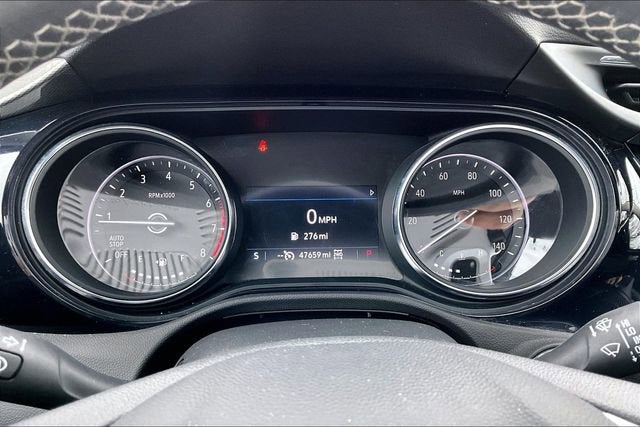 2 USB Ports w/Auxiliary Input Jack, 2-Way Power Driver Lumbar Control, 3 Years of OnStar & Connected Services Plan (DISC), 3.17 Final Drive Axle Ratio, 4-Way Manual Passenger Seat Adjuster, 4-Wheel Disc Brakes, 6 Speakers, 6-Way Manual Driver Seat Adjuster, 8-Way Power Driver Seat Adjuster, ABS brakes, Air Conditioning, Alloy wheels, AM/FM radio: SiriusXM, Auto High-beam Headlights, Automatic temperature control, Brake assist, Bumpers: body-color, Cloth w/Leatherette Seat Trim, Cold Weather Comfort Package, Compass, Delay-off headlights, Driver door bin, Driver vanity mirror, Dual front impact airbags, Dual front side impact airbags, Electronic Stability Control, Emergency communication system: OnStar and Buick connected services capable, Enhanced Performance 6-Speaker System, Front anti-roll bar, Front Bucket Seats, Front Center Armrest, Front fog lights, Front License Plate Bracket, Front reading lights, Front wheel independent suspension, Fully automatic headlights, Heated door mirrors, Heated Driver & Front Passenger Seats, Illuminated entry, Knee airbag, Low tire pressure warning, Occupant sensing airbag, Outside temperature display, Overhead airbag, Overhead console, Panic alarm, Passenger door bin, Passenger vanity mirror, Power door mirrors, Power steering, Power windows, Preferred Equipment Group 1SB, Radio data system, Radio: 8 Diagonal Buick Infotainment System, Rear reading lights, Rear side impact airbag, Rear window defroster, Rear window wiper, Remote keyless entry, Remote Vehicle Starter System, Ride & Handling Suspension, Security system, SiriusXM Radio, Speed control, Speed-sensing steering, Split folding rear seat, Spoiler, Steering wheel mounted audio controls, Tachometer, Telescoping steering wheel, Tilt steering wheel, Traction control, Trip computer, Variably intermittent wipers, Wheels: 18 Bright Silver Painted Aluminum, Wireless Apple CarPlay/Wireless Android Auto.