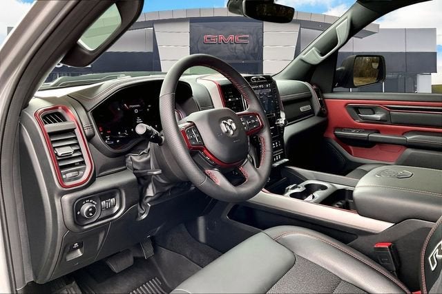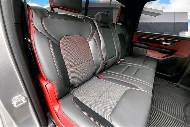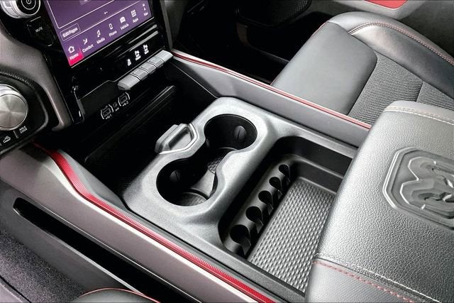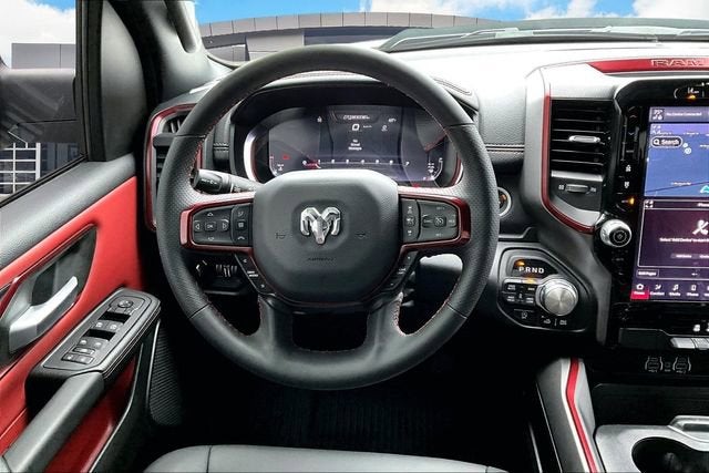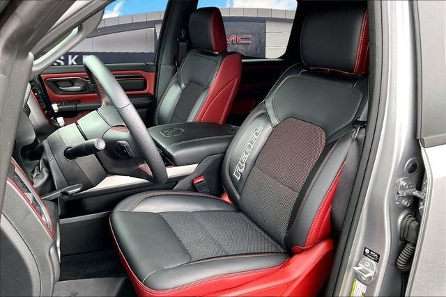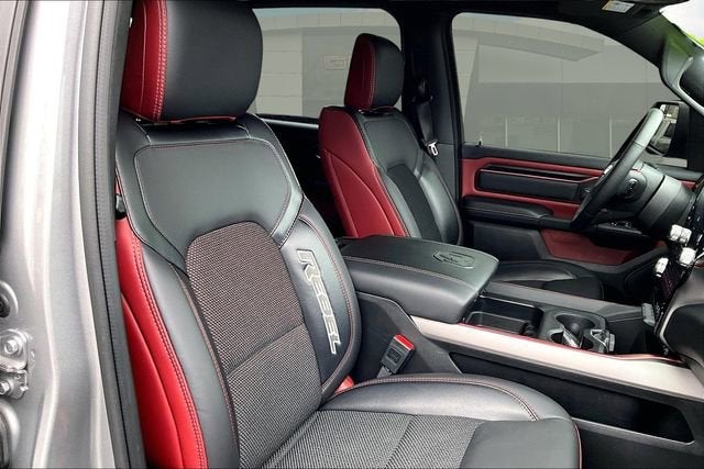 10 Speakers, 3.92 Rear Axle Ratio, 4 Way Front Headrests, 4-Wheel Disc Brakes, 4G LTE Wi-Fi Hot Spot, ABS brakes, Air Conditioning, Alloy wheels, AM/FM radio: SiriusXM with 360L, Apple CarPlay, Apple CarPlay/Android Auto, Auto High-beam Headlights, Auto-dimming Rear-View mirror, Automatic temperature control, Brake assist, Bucket Seats, Cloth/Vinyl Bucket Seats, Compass, Connected Travel & Traffic Services, Connectivity - US/Canada, Convex Wide-Angle Exterior Mirror Insert, Delay-off headlights, Driver door bin, Driver vanity mirror, Dual front impact airbags, Dual front side impact airbags, Electronic Stability Control, Exterior Mirrors w/Heating Element, Front anti-roll bar, Front Bucket Seats, Front Center Armrest w/Storage, Front dual zone A/C, Front fog lights, Front License Plate Bracket, Front reading lights, Front Seat Back Map Pockets, Front wheel independent suspension, Full Length Upgraded Floor Console, Fully automatic headlights, Garage door transmitter, Google Android Auto, GPS Antenna Input, GPS Navigation, Heated door mirrors, Heated front seats, Heated steering wheel, Illuminated entry, Integrated Voice Command w/Bluetooth®, Leather steering wheel, Low tire pressure warning, Manual Folding Exterior Mirrors, Navigation System, Occupant sensing airbag, Outside temperature display, Overhead airbag, Overhead console, Panic alarm, ParkView Rear Back-Up Camera, Passenger door bin, Passenger vanity mirror, Power Adjust 8-Way Driver Seat, Power door mirrors, Power driver seat, Power steering, Power windows, Quick Order Package 21W Rebel, Radio data system, Radio: Uconnect 5 Nav w/12.0 Display, Rear 60/40 Folding Seat, Rear anti-roll bar, Rear seat center armrest, Rear step bumper, Remote keyless entry, SiriusXM w/360L, Speed control, Split folding rear seat, Steering wheel mounted audio controls, Tachometer, Telescoping steering wheel, Tilt steering wheel, Traction control, Trip computer, USB Host Flip, Variably intermittent wipers, Voltmeter, Wheels: 18 x 8.0 Painted Mid-Gloss Black.
